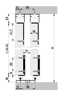 This system features left and right upper guides and two DPX Femail rollers on the bottom rail. It is compatible with male bottom rails and incorporates a soft-close mechanism.