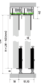 This system features left and right upper guides with two bearings , and two DPX 80 rollers on the bottom rail. It is compatible with 55-60mm rails and incorporates a soft-close mechanism.Set includes the asssambling key